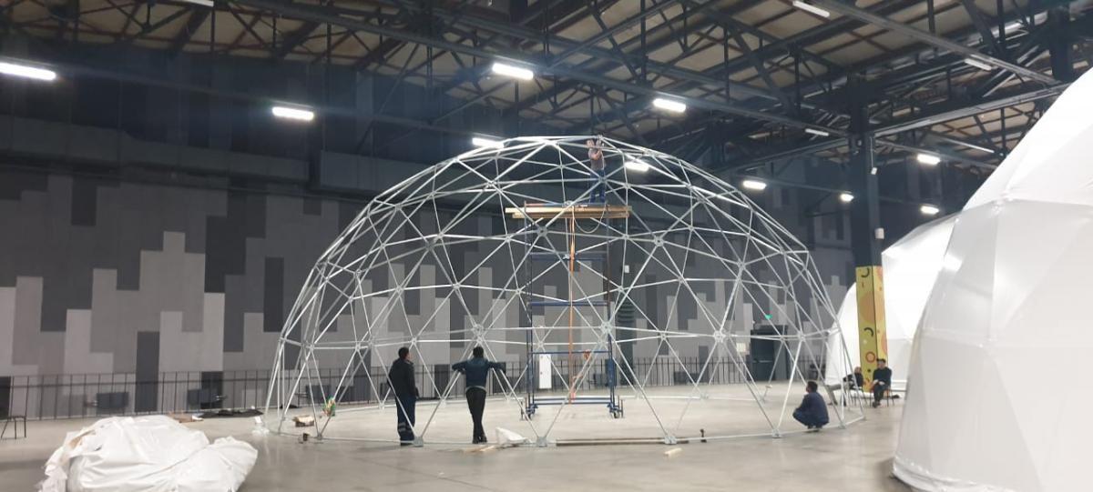 В комплектацию входит: - Металлический оцинкованный каркас - Крыша из мембраны ПВХ - Такелаж для сборки - Инструкция по монтажу - Гарантийный талон - Сертификаты качества Форма: Круг Площадь: от 28 до 1017 м² Диаметр: от 6 до 36 м Высота: от 3 до 15.5 м Вес: от 224 до 8136 кг Время сборки: от 3 до 40 ч Ветровая нагрузка: до 24 м/с ПВХ плотность: 900–1100 г/м² Защита каркаса: горячий цинк Класс горючести: Г1 Цена (летняя комплектация): от 406 000 ₽ до 14 746 500 ₽ (рассчитывается индивидуально)