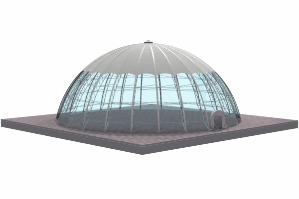 В комплектацию входит: - Металлический оцинкованный каркас - Крыша из мембраны ПВХ - Такелаж для сборки - Инструкция по монтажу - Гарантийный талон - Сертификаты качества Форма: Круг Площадь: 28–1017 м² Диаметр: 6–36 м Высота: 3–15 м Вес: 224–8136 кг Время сборки: 3–40 ч Ветровая нагрузка: до 24 м/с ПВХ плотность: 900–1100 г/м² Защита каркаса: горячий цинк Класс горючести: Г1 Цена (летняя комплектация): от 462 000 ₽ до 16 765 500 ₽ (рассчитывается индивидуально)